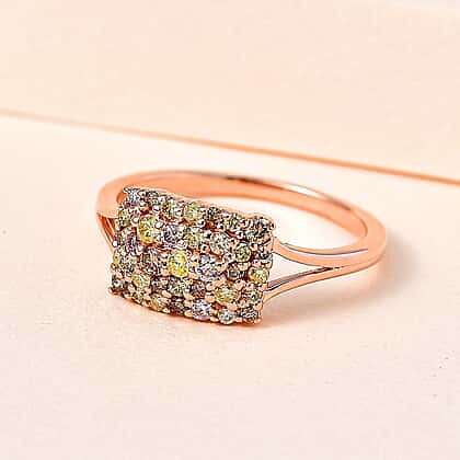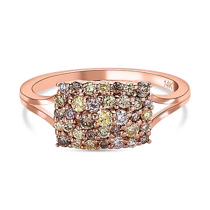 14K Rose Gold SGL Certified Multi Colour Diamonds Cluster Ring 0.50 Ct.