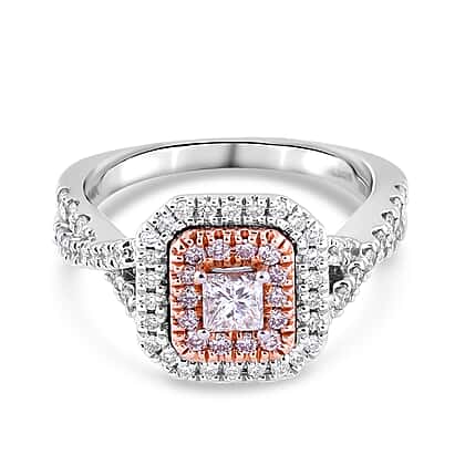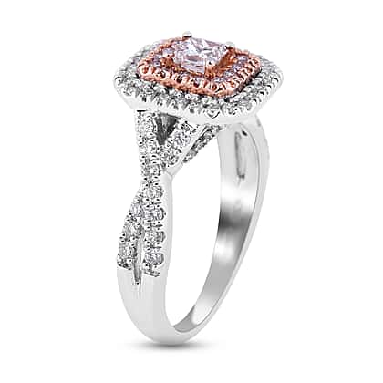 14K White and Yellow Gold Natural Pink Diamond and White Diamond (I1/G-H) Ring 1.00 Ct, Gold wt 4.70 Gms