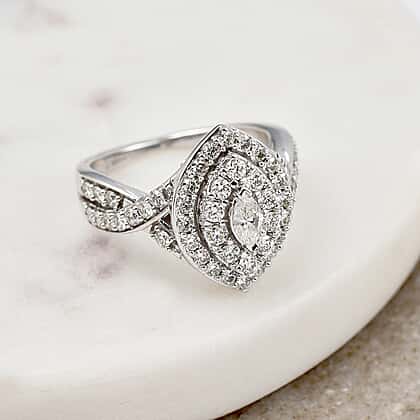 14K White Gold SI Natural White Diamond Halo Ring 1.40 Ct, Gold Wt. 3.60 Gms.
