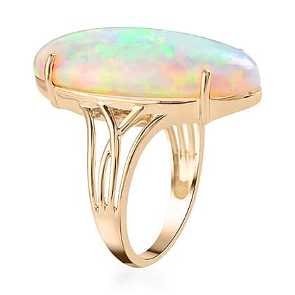 14K Yellow Gold AGI Certified AAA Ethiopian Welo Opal Ring 10.35 Ct.