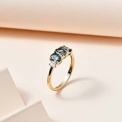 14K Yellow Gold Montana Sapphire & Diamond (G-H) Ring 1.50 Ct