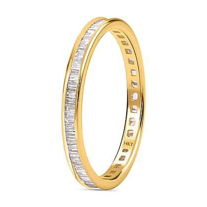 Dive into the ultimate luxury with this 14K Yellow Gold White Diamond band Ring. The timeless design features a row of brilliant, sparkling white diamonds carefully set into a sleek, smooth band of 14K yellow gold. The result is a ring that exudes elegance and sophistication, perfect for any occasion. Whether worn as a wedding band, anniversary gift or to add a touch of glamour to your everyday look, this stunning ring is sure to turn heads and capture hearts. Make a statement of pure beauty and refinement with this irresistible piece of jewellery.