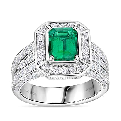 Chairman's Vault Collection RHAPSODY 1.8 Ct. AAAA Zambian Emerald, Natural Diamond Halo Ring in 950 Platinum