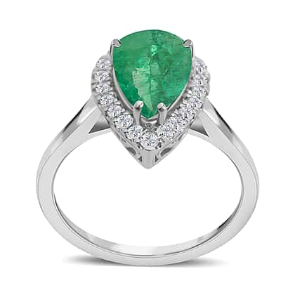 Designed by Rhapsody, this fabulous-looking Colombian Emerald and Diamond Halo Ring is for the connoisseurs of fine jewellery who would not settle for anything less than perfect. The ring is made of the finest 950 Platinum, which leaves a touch of elegance to it. The pear-shaped Colombian emerald (11x7mm) has a faceted cut that amplifies the vivid green hues of the flawless AAAA gem. The ring crafted in platinum features a diamond halo that dazzles with an extraordinary fire.