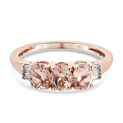 1.05 Ct. Marropino Morganite and White Diamond Ring in 9K Rose Gold
