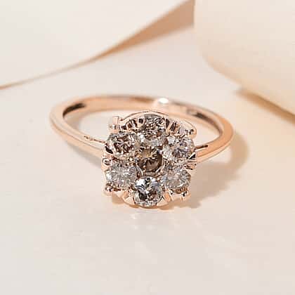 9K Rose Gold Cluster Champagne Diamond Ring 1.00 Ct.