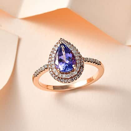9K Rose Gold Premium Tanzanite, Pink Diamond and White Diamond Ring 1.5 Ct