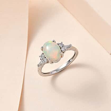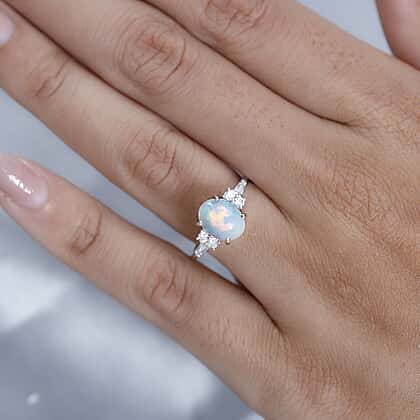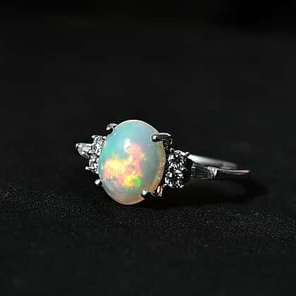 9K White Gold Ethiopian Welo Opal, Moissanite Ring 1.50 ct, Gold Wt. 2.2 Gms
