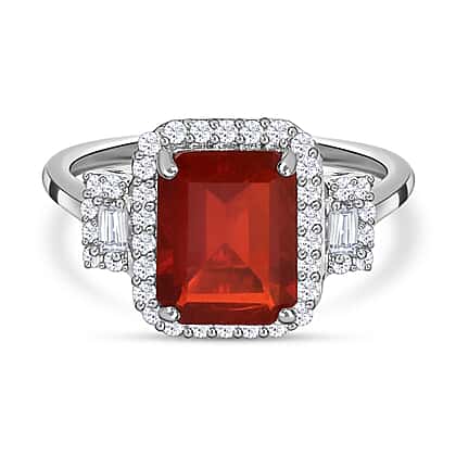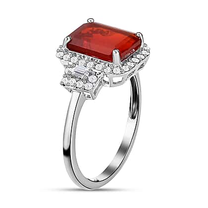 9K White Gold Crimson Fire Opal and Diamond Ring 2.03 Ct.