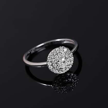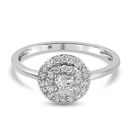 0.50 Ct. SGL Certified Diamond I2/G-H Double Halo Ring in 9K White Gold