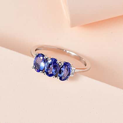 - 3 Rare violet-blue tanzanite stones in oval shape mounted on prongs