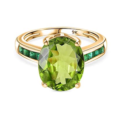 9K Yellow Gold AAA Peridot & Zambian Emerald Ring 4.90 Ct.