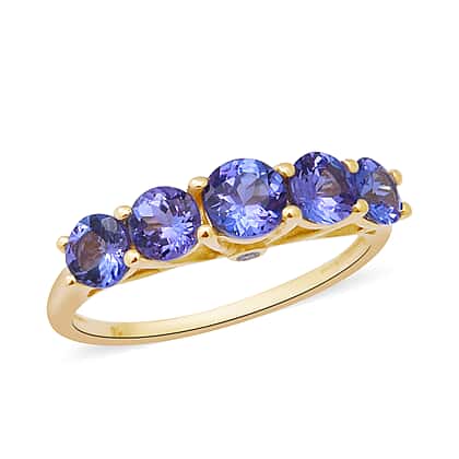 4 Ct Tanzanite and Diamond 5 Stone Ring in 9K Yellow Gold I3 GH