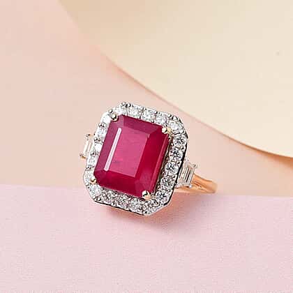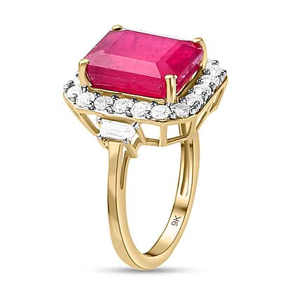 9K Yellow Gold Cabo Delgado Ruby and Moissanite Ring 7.75 Ct.