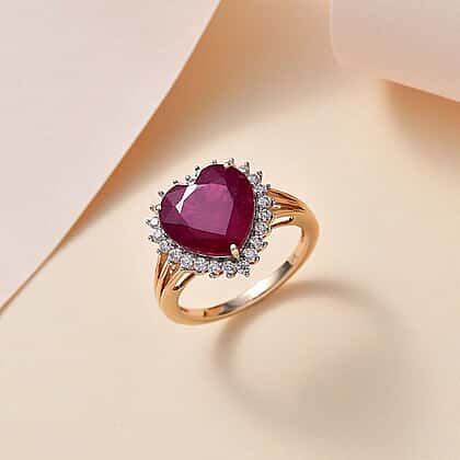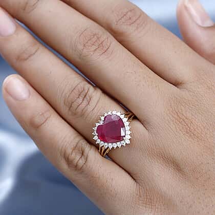 9K Yellow Gold African Ruby & Moissanite Heart Ring 7.12 Ct. Gold Wt. 2.30 Gms
