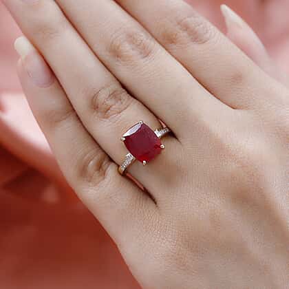 9K Yellow Gold African Ruby & Moissanite Ring 6.48 Ct.