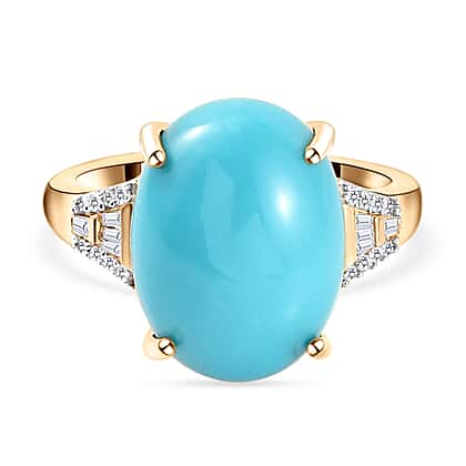 9K Yellow Gold AA Arizona Sleeping Beauty Turquoise Ring with Diamond