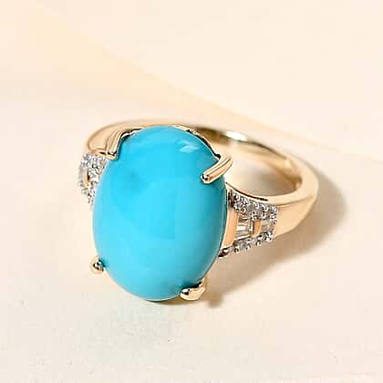 9K Yellow Gold Arizona Sleeping Beauty Turquoise ( Oval 16X12mm ) and Diamond Ring 7.50 Ct.