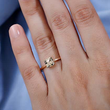 This 9K Yellow Gold Asscher Cut AAA Turkizite Solitaire Ring enchants with an amalgamation of warm golden hues. The highlight of the ring is an AAA Turkizite, which sits at its centre in a mesmerising asscher cut with step facets that lend it a glamorous air. The gemstone is held in the warm embrace of yellow gold, which is both durable and luxurious.