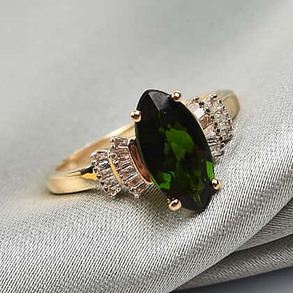 1.2 Ct. Chrome Diopside and White Diamond Ring in 9K Yellow Gold