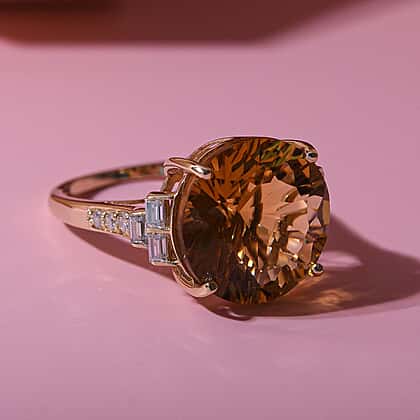 9K Yellow Gold Citrine & Moissanite Ring 10.62 Ct.