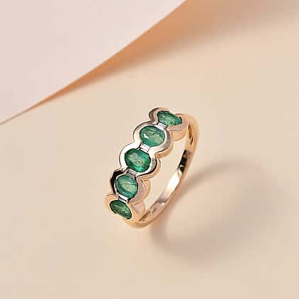 9K Yellow Gold Emerald & Moissanite Band Ring 1.15 Ct