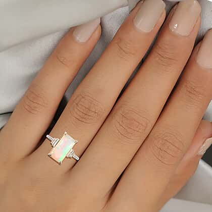 - GEMSTONES: The Welo Opal forms a baguette shaped head of the ring while diamonds are embellished on the shank and the flanks, to weigh 3.15ct