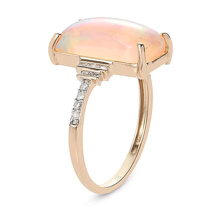 9K Yellow Gold Ethiopian Welo Opal and Diamond Ring 3.13 Ct.