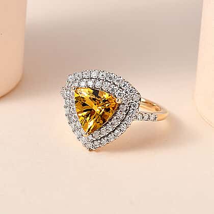 9K Yellow Gold Golden Beryl and Moissanite Halo Ring 2.03 Ct