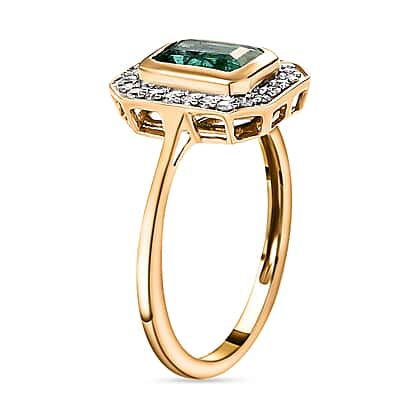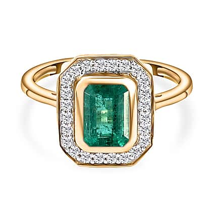 9K Yellow Gold Kagem Zambian Emerald and Diamond Ring 1.15 Ct.