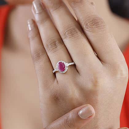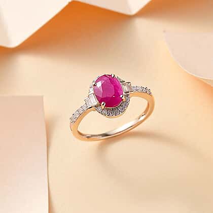 - AA Mozambique ruby with white diamond halo for a rich contrast