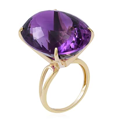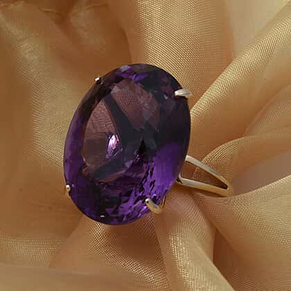 50 Ct. AA Lusaka Amethyst Solitaire 9K Yellow Gold Cocktail Ring