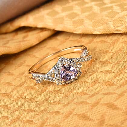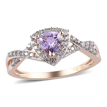 Super Rare - Trillion Cut Pink Tanzanite and Diamond Infinity Style Ring in 9K Yellow Gold