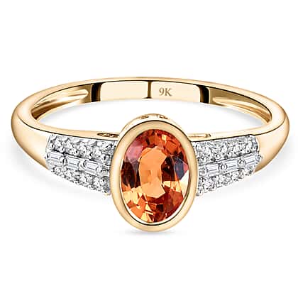 9K Yellow Gold Ring with Songea Sapphire and Diamond Accent 1.18 Ct., 2 Gms