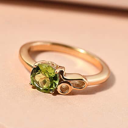 Peridot August Birthstone Zodiac Leo Sign Ring in Gold Plated Silver