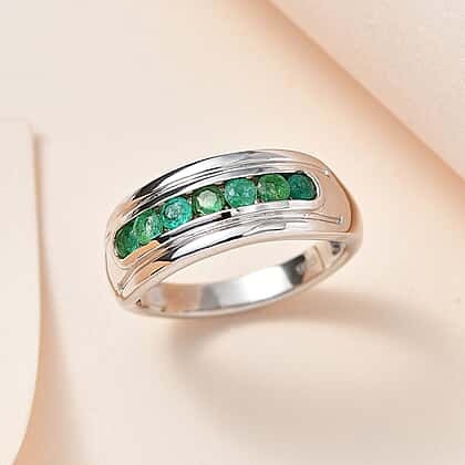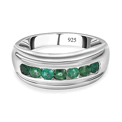 AAA Gemfields Emerald 7 Stone Band Ring in Platinum Overlay Sterling Silver
