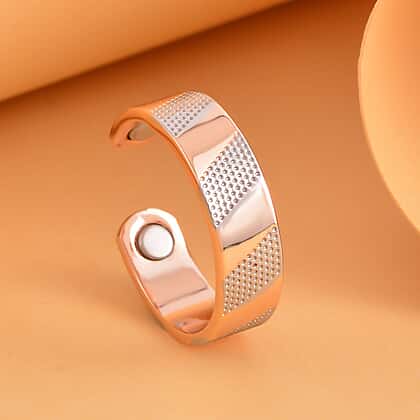 This adjustable open ring will ensure you get all the attention you deserve! The ring features an attractive dual-toned pattern which looks remarkable and adds a distinct appeal. The ring's band is comprised of diagonal waves in silver colour with a dotted texture enveloping the band. Alternatingly, the gold-toned surface is smooth, offering a striking combination that provides a unique appeal. The wide band of the ring is comfortable to wear and looks attractive. The open ring is adjustable, ensuring your comfort and convenience. With its versatile design, this ring will make for a great stackable piece.