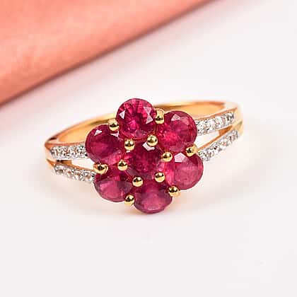 2.15 Ct. Ruby and Zircon Cluster Ring in 14K Gold Plated Sterling Silver