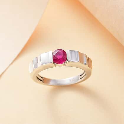 African Ruby Solitaire Ring in Rhodium Overlay Sterling Silver