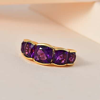 Amethyst 5 Stone Ring in 18K Yellow Gold Vermeil Plated Sterling Silver 4.43 Ct.