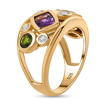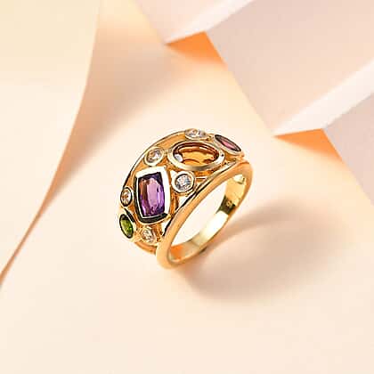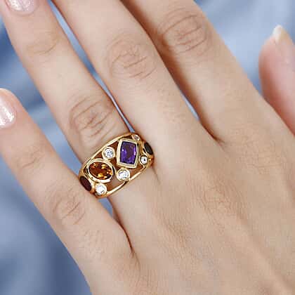 Amethyst & Multi Gemstone Ring in 18K YG Vermeil Plated Sterling Silver 2.50 Ct