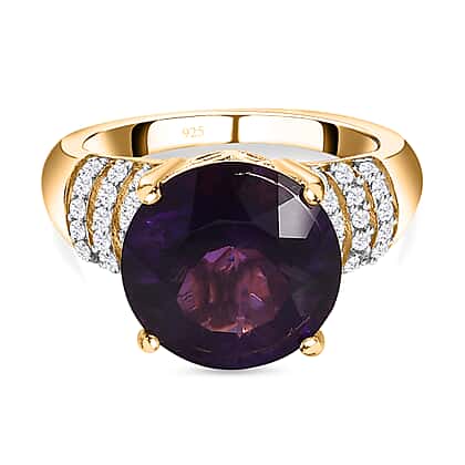 African Amethyst, White Zircon Ring in 18K Vermeil Yellow Gold Plated Sterling Silver 5.90 ct 5.451 Ct.