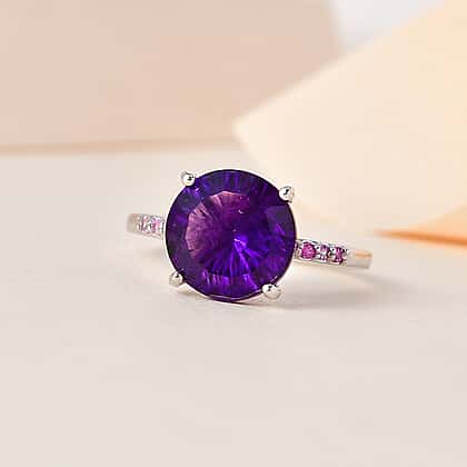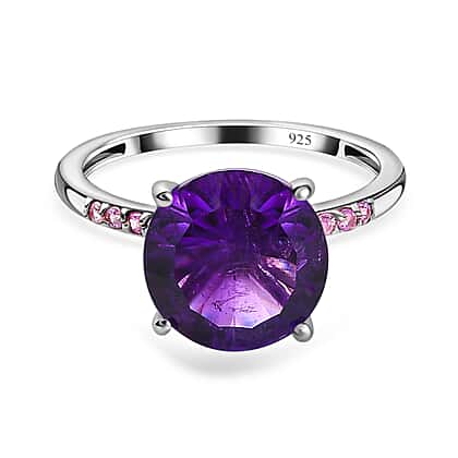 Amethyst & Pink Sapphire Ring in Platinum Overlay Sterling Silver, 3.70 Ct.