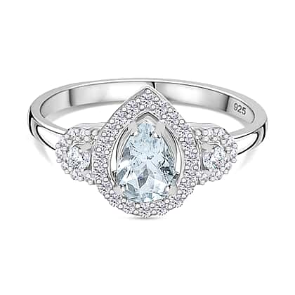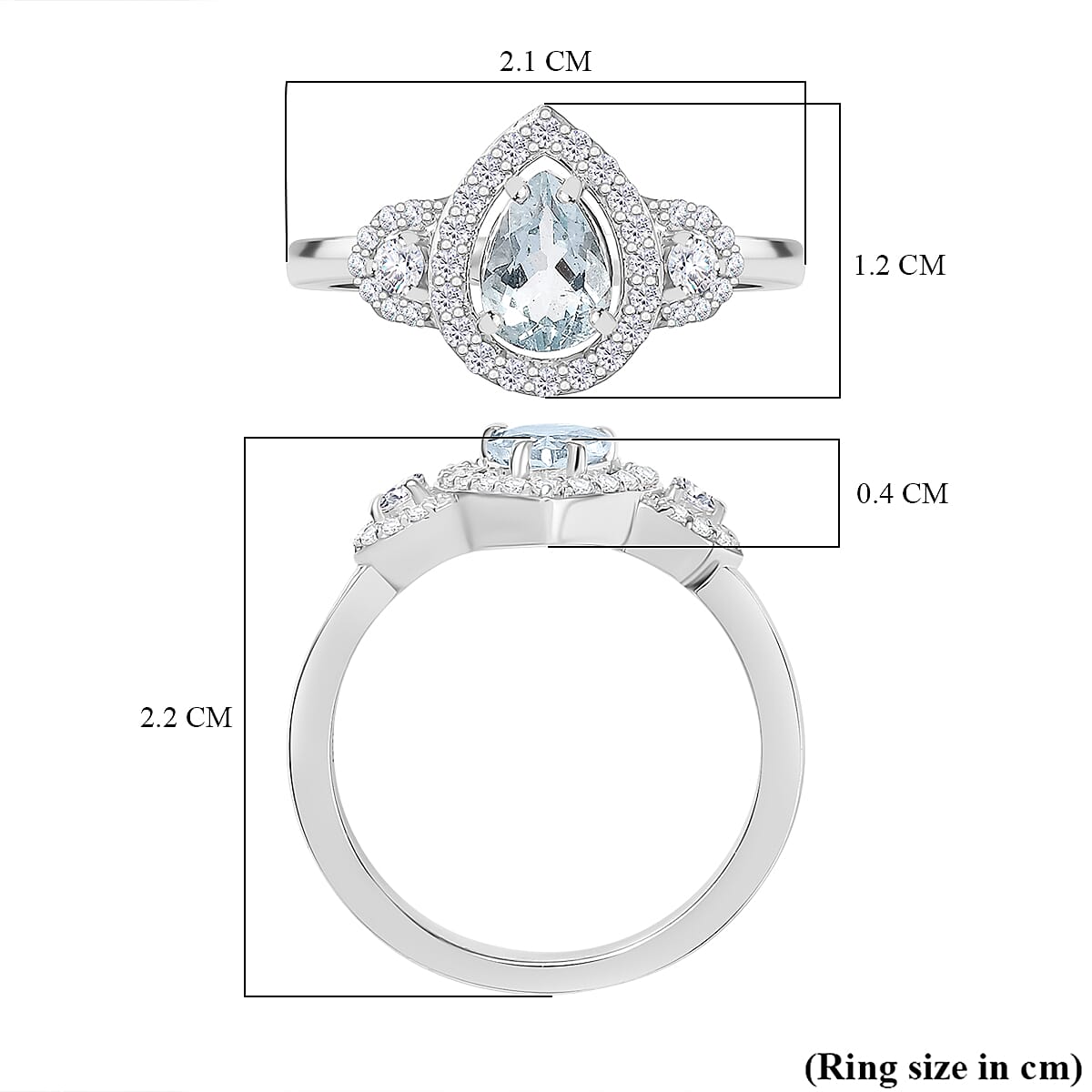 Aquamarine & Moissanite Ring in Rhodium Overlay Sterling Silver 0.93 Ct.