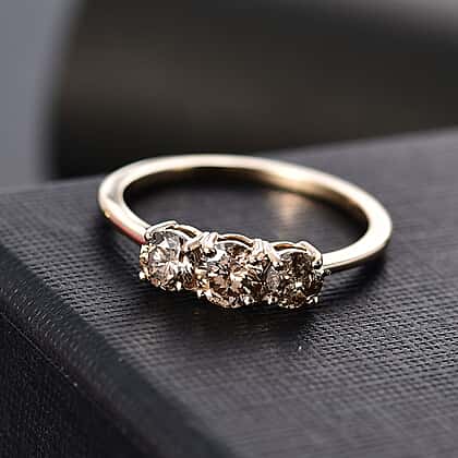 Argyle Diamond Closeout - 9K Yellow Gold SGL Certified Natural Champagne Diamond 3 Stone Ring 1.00 Ct.