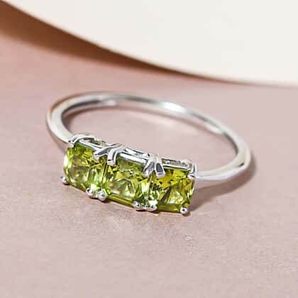 Trilogy Peridot Arizona Ring in Platinum Plated Sterling Silver 1.10 Ct.