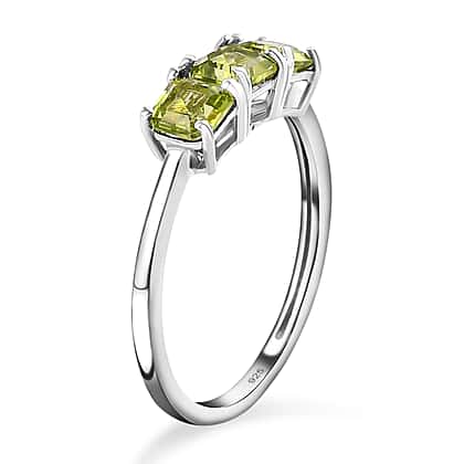 Arizona Peridot (Asscher Cut) Trilogy Ring in Platinum Overlay Sterling Silver 1.10 Ct.