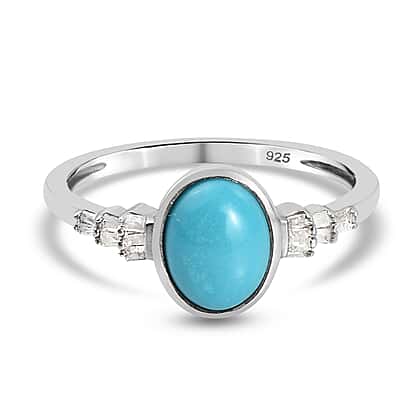 Arizona Sleeping Beauty Turquoise and Diamond Ring in Platinum Overlay Sterling Silver 1.12 Ct.