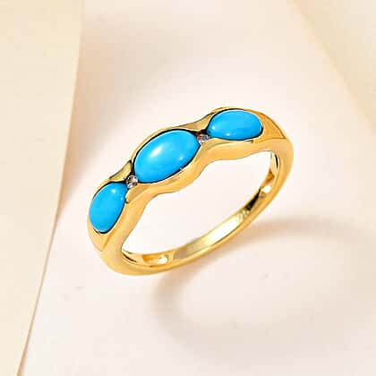 Arizona Sleeping Beauty Turquoise and Natural Zircon Ring in 18K Vermeil Yellow Gold Plated Sterling Silver 1.72 Ct.