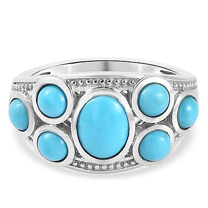 Arizona Sleeping Beauty Turquoise Cluster Ring in Platinum Overlay Sterling Silver 2.32 Ct.